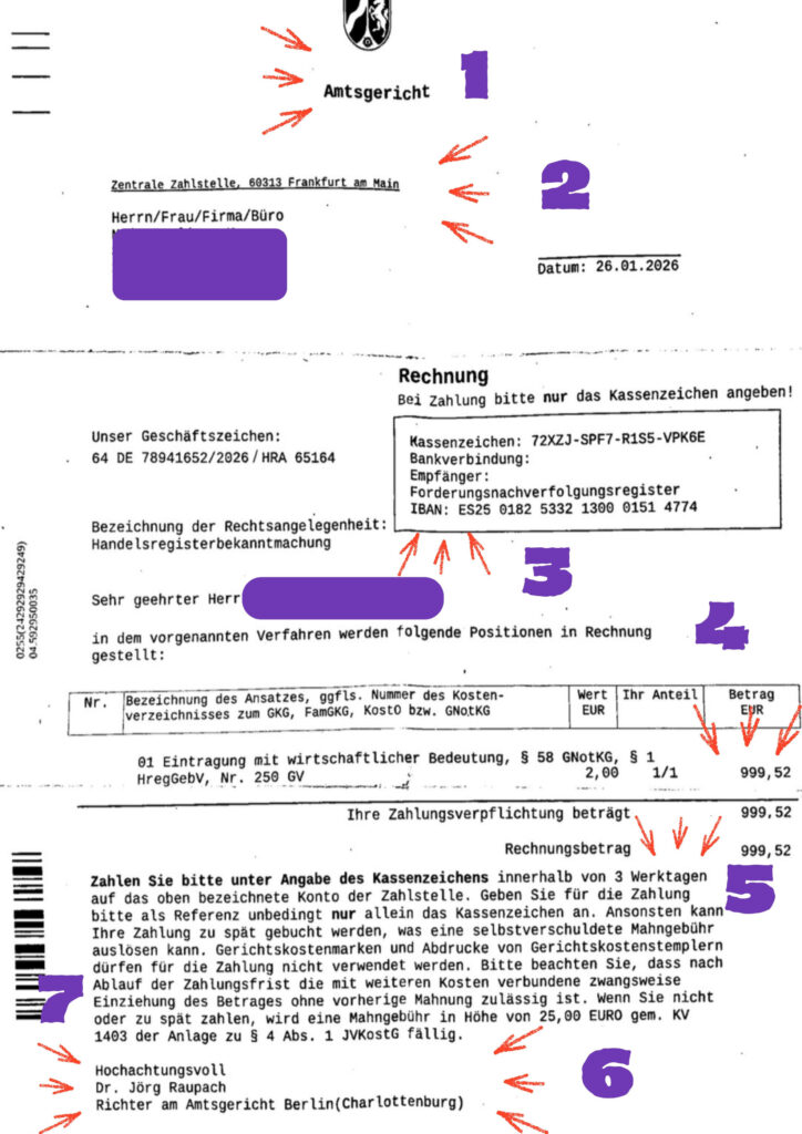 Comunicações reais sempre trazem o nome completo, como Amtsgericht Berlin.